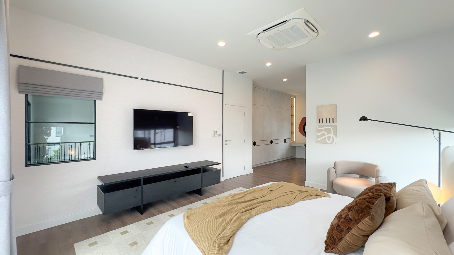 การผสมผสานโทนสีอบอุ่นกับเฟอร์นิเจอร์เส้นเรียบ ทำให้ห้องนี้เหมาะทั้งสำหรับผู้เช่าครอบครัวและชาวต่างชาติที่ให้ความสำคัญกับความสบายและแสงธรรมชาติ
