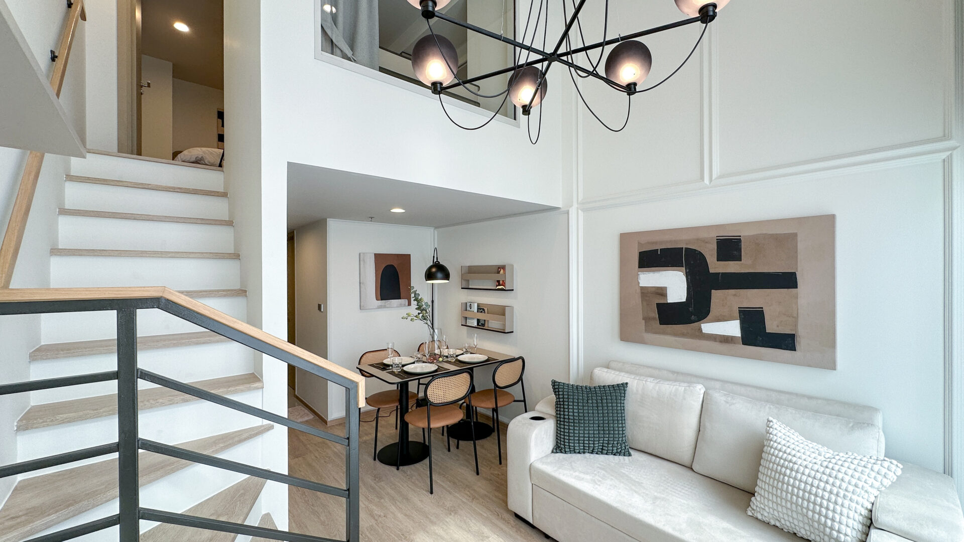 คอนโดในเมืองโดยเฉพาะแบบ Duplex / Loft — มักมีข้อจำกัดด้านขนาด แต่ถ้ารู้จักใช้ประโยชน์จากความสูงของเพดาน + การวาง layout + การเลือกวัสดุและแสงไฟให้ดี คุณจะได้ทั้งความสวย ฟังก์ชันครบ และความรู้สึกน่าอยู่