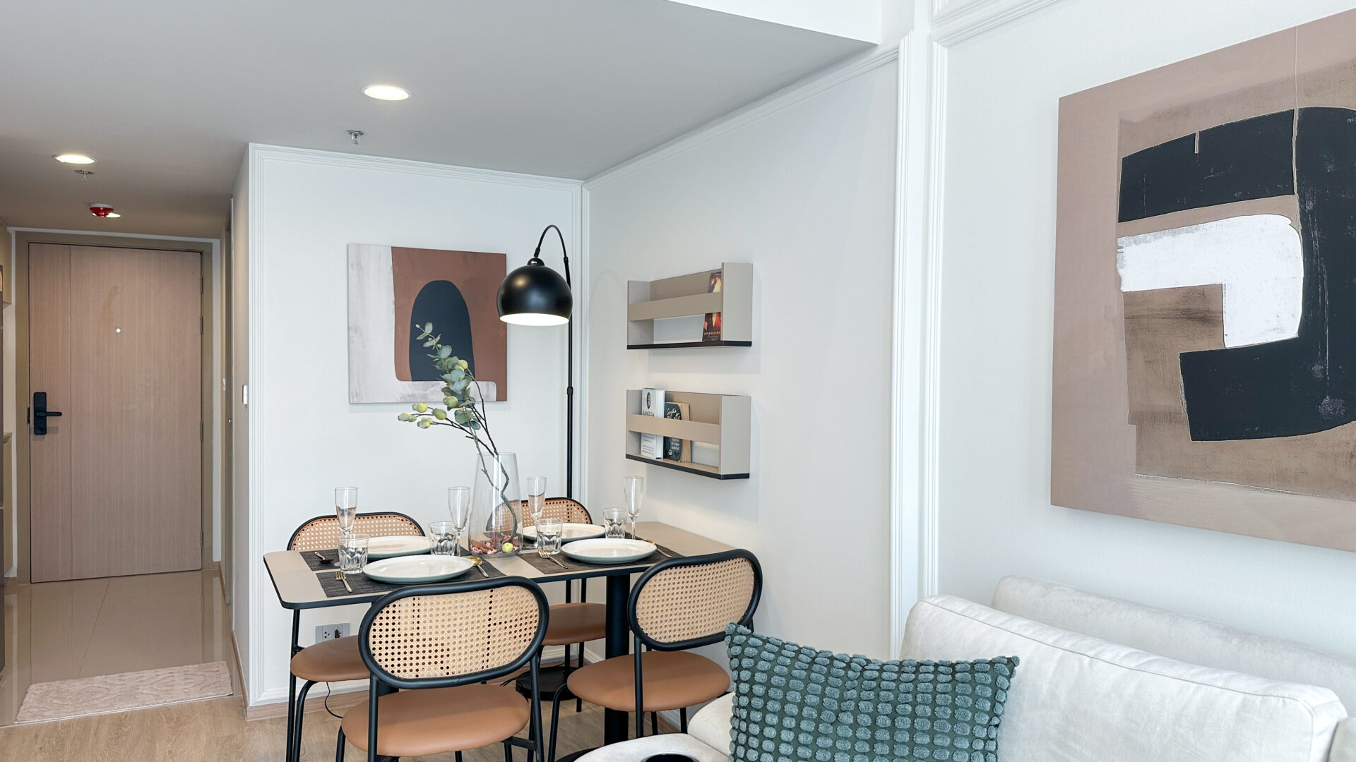 โทนสีสว่าง + โครงสร้างที่ clean modern × classic ทำให้ภาพรวมของห้องดูใหญ่กว่าเดิม และพร้อมเข้าอยู่ทันที ถูกใจทั้งนักศึกษา คนทำงาน คู่ที่แชร์กัน หรือคนเช่าที่มองหาคอนโดคุณภาพกลางใจเมือง